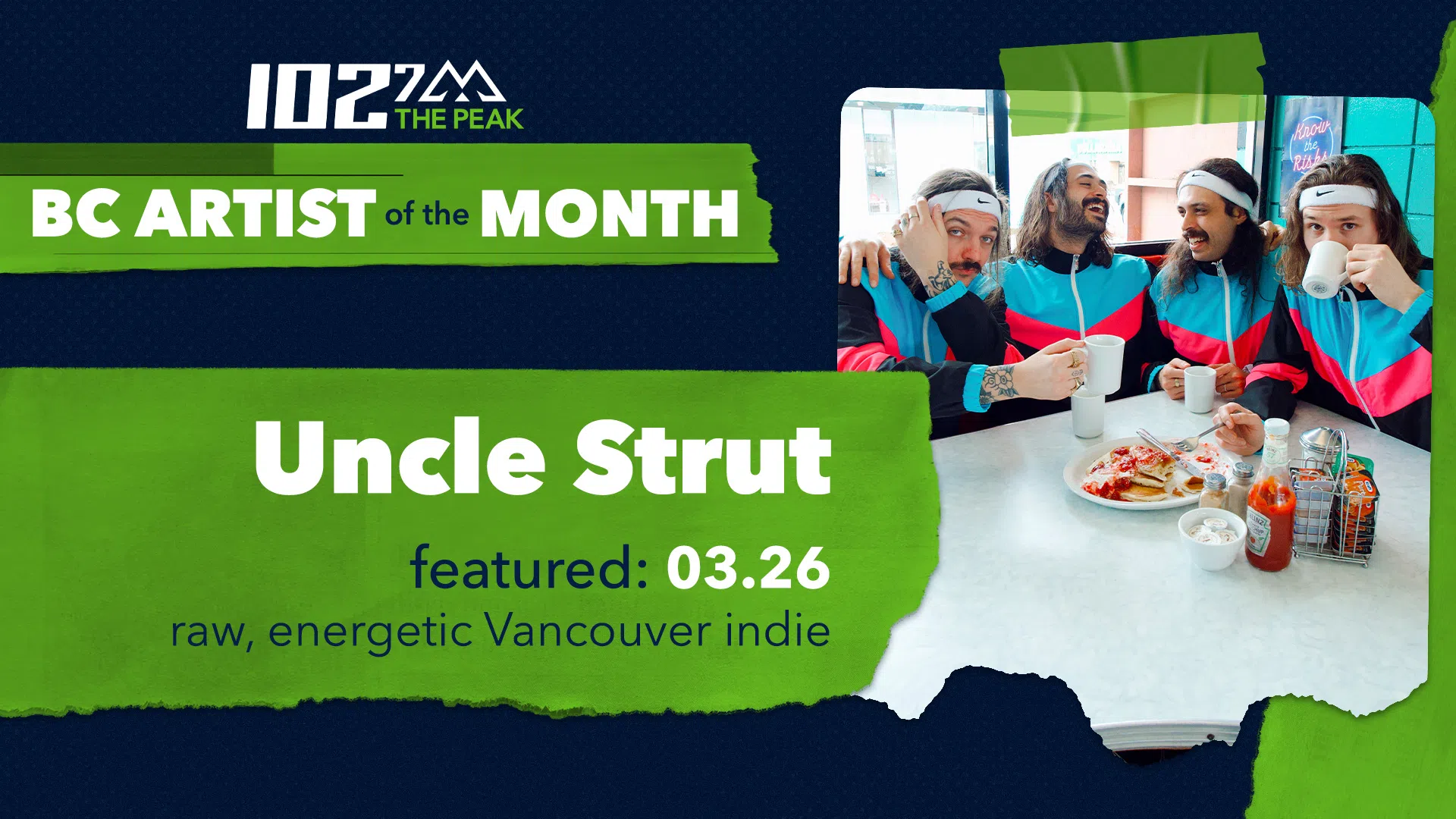 Rate some Songs, Win some Cash! Join our PEAK Music Club! Listen to some short song clips and tell us what you think BC Artist of the Month If you’re a local artist or know someone we should play on THE PEAK, let us know! "PLAY 102 7 THE PEAK" Did you know you can listen to THE PEAK on your all your smart devices? See Feature 0 PEAK Music Club Rate some Songs, Win some Cash! See Feature 1 Artist of the Month BC Artist of the Month See Feature 2 Ways to Listen "PLAY 102 7 THE PEAK" See Feature 3 Uncle Strut | Artist of the Month Shimbashi Station | Artist of the Month Bestfriend | Artist of the Month The Bankes Brothers | Artist of the Month Past Playlists March 02, 2026 March 01, 2026 February 28, 2026 February 27, 2026 February 26, 2026 February 25, 2026 February 24, 2026 Loading Songs All 11 PM 10 PM 9 PM 8 PM 7 PM 6 PM 5 PM 4 PM 3 PM 2 PM 1 PM 12 PM 11 AM 10 AM 9 AM 8 AM 7 AM 6 AM 5 AM 4 AM 3 AM 2 AM 1 AM 12 AM More LIVE ON THE PEAK 102.7 THE PEAK | Alternative Vancouver artist LISTEN NOW Ways To Listen ▶ Call or Text Us 604-280-1027 Show Hide View MoreContests Join THE PEAK Music Club Win Noah Kahan Tickets Win tickets to see Wolf Parade!Win tickets to see Wolf Parade! on November 13th Show Hide View MorePEAK Concerts