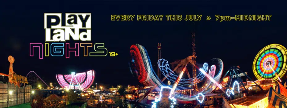 Kicking off Friday, July 7 and running every Friday for the month, Playland will host four evenings dedicated to adults-only 19+, complete with beer, wine, food, midway games and of course, exhilarating rides. The grounds will be fully licensed, so guests can enjoy their favourite beverage throughout the park while enjoying the games and rides.