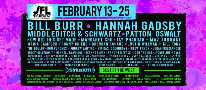 JFL NorthWest returns February 2020! Vancouver’s Just for Laughs festival hits stages and streets across the city for 12-hilarious-days of star-powered stand-up, podcasts, improv, film and sketch performances, alongside breakout comics you didn’t even know you loved!